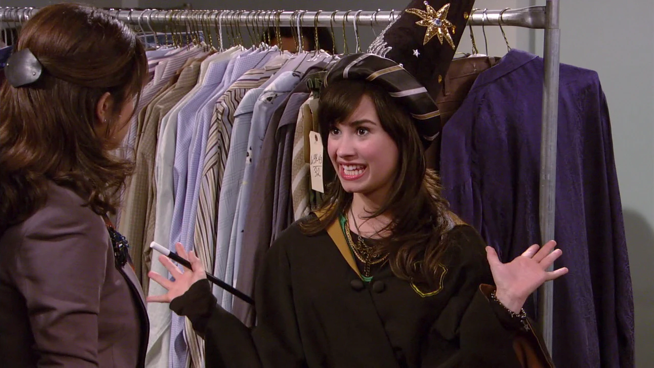 In the scene where Sonny is first dressed as a Wizard, you can see her holding a wand. The wand vanishes after a few seconds.
