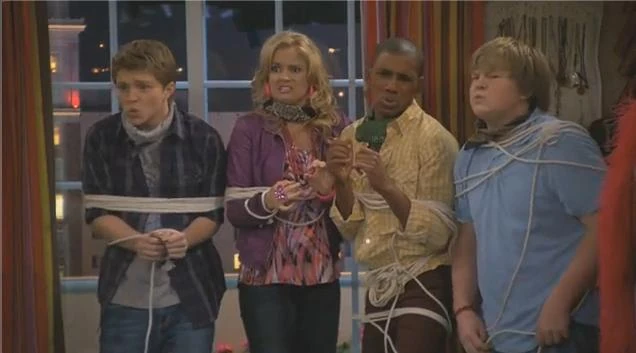 Chad is then shown knocking on Amber's apartment door with flowers. Chad has come to beg Amber to take her job back. Amber asks him if anyone knows he's there. When he replies, "No.", she grabs him, pulls him into her apartment, and ties him up. Nico and Grady are then shown walking down the hall looking for "Smooth's" apartment. Amber answers the door and speaks with them, until Chad, who is tied up, hops passed the doorway. Nico and Grady notice him and comment. Amber then pulls both of them into her apartment and ties them up as well. Tawni is then shown walking down the hallway looking for "Maya Babooty". She knocks on the door and Amber answers. Amber speaks with her until Chad, Nico and Grady, all of which are tied up, hop pasted the doorway. Amber grabs Tawni, pulls her into her apartment and ties her up. She then locks the four of them in the closet.